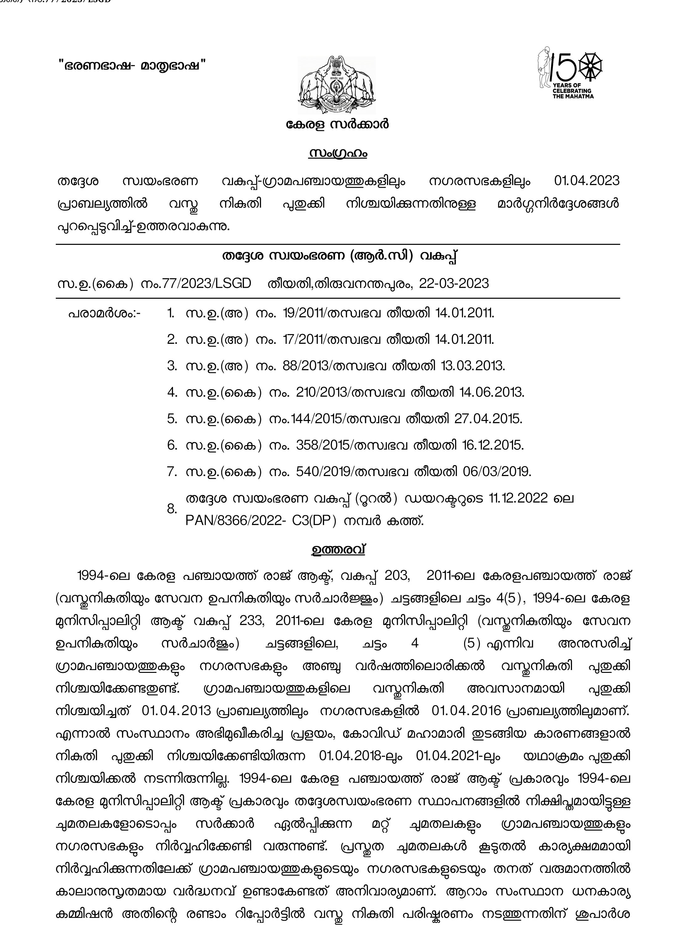 കെട്ടിടനികുതി പരിഷ്കരണവുമായി മാര്ച്ച് 22ന് ഇറങ്ങിയ ഉത്തരവ് ചുവടെ.