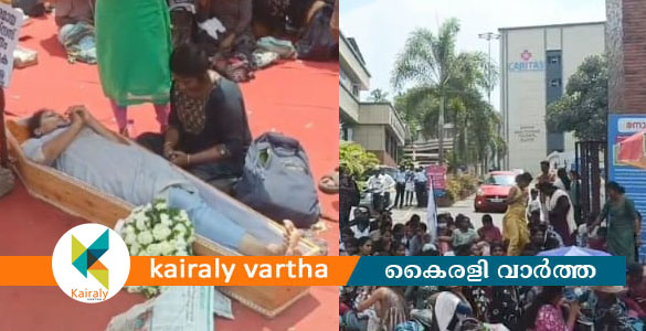 കാരിത്താസ് ആശുപത്രിയിലെ പ്രതിഷേധം ശവപ്പെട്ടിയിൽ
