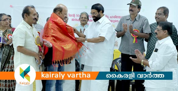 ഏറ്റുമാനൂർ: വയലാർ ഗാനങ്ങളുടെ പൊരുൾ ആഴത്തിൽ തിരിച്ചറിഞ്ഞ കവിയാണ് ഹരിയേറ്റുമാനൂരെന്ന് മന്ത്രി വി.എൻ. വാസവൻ. പാട്ടെഴുത്തിൻ്റെ 50 ആണ്ടു പിന്നിട്ട ഹരിയേറ്റുമാനൂരിനെ ജനകീയ വികസന സമിതിക്കു വേണ്ടി ആദരിച്ച് സംസാരിക്കുകയായിരുന്നു മന്ത്രി വാസവൻ. ഒപ്പം വയലാറിൻ്റെ ഗാനങ്ങളും കവിതകളും മന്ത്രി ആലപിച്ചത് സദസിനെ വിസ്മയിപ്പിച്ചു.